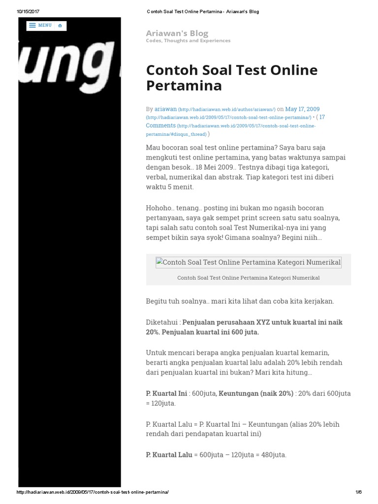 Download Soal Tes Online Bps Pertamina Jawabanku Id from imgv2-2-f.scribdassets.com Maybe you would like to learn more about one of these? Check spelling or type a new query. We did not find results for: